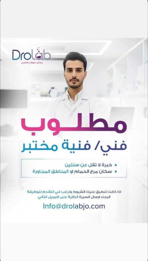 مطلوب فني أو فنية مختبر للعمل لدى مختبر درولاب